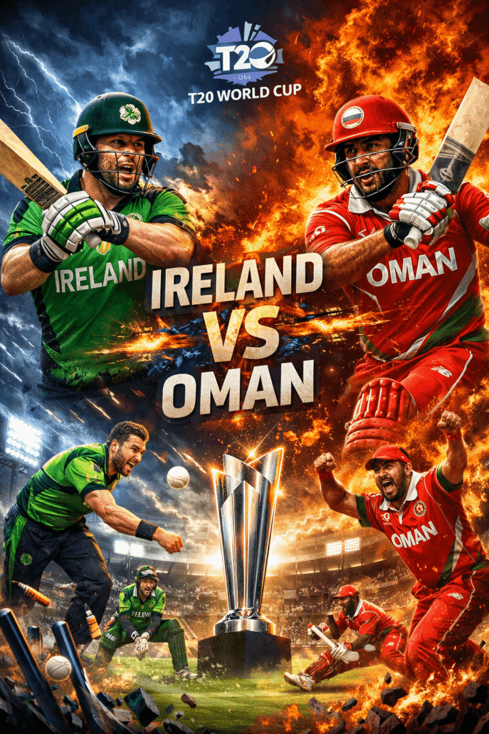 Ireland और Oman के बीच ICC T20 World Cup 2026 का अहम मुकाबला 14 फरवरी 2026 को खेला जा रहा है। यह मैच ग्रुप-B का महत्वपूर्ण मुकाबला है क्योंकि दोनों टीम टूर्नामेंट में अपनी पहली जीत की तलाश में हैं।