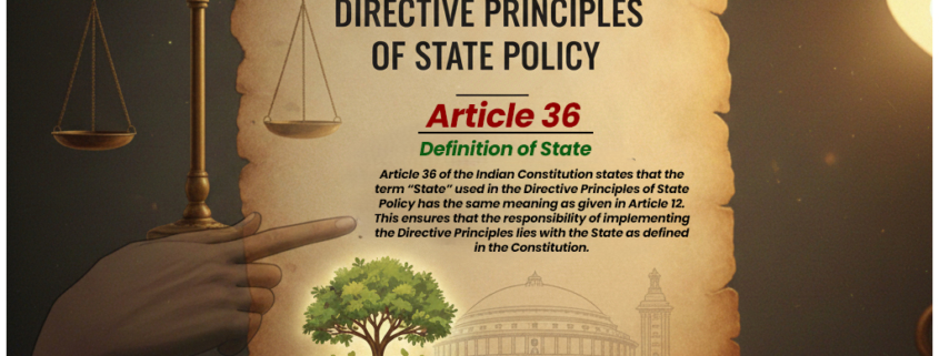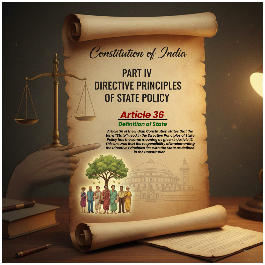 Article 36 कहता है कि DPSP में “राज्य” का वही अर्थ होगा जो Article 12 में दिया गया है।