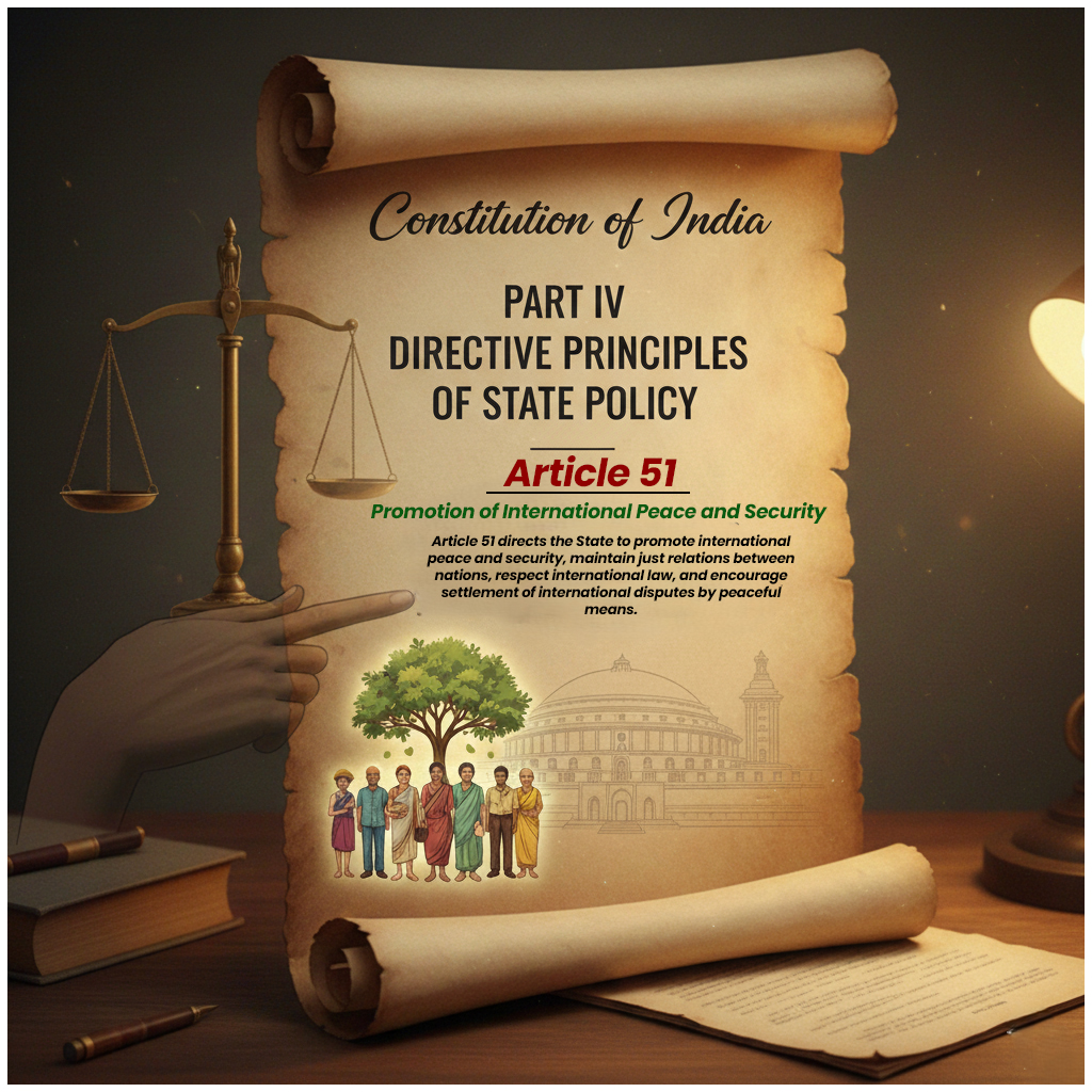 Article 51 भारतीय संविधान के भाग IV (Directive Principles of State Policy) के अंतर्गत आता है।