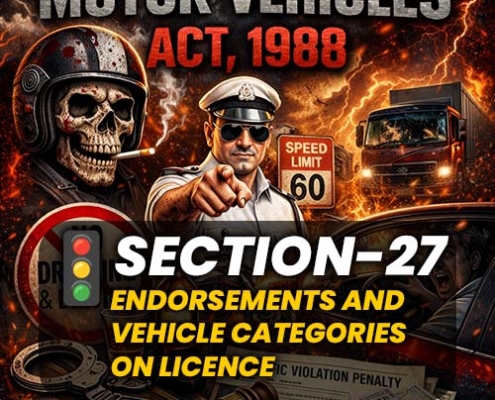मोटर व्हीकल्स एक्ट 1988 की धारा 27 में ड्राइविंग लाइसेंस पर Endorsements और Vehicle Categories दर्ज करने के नियम बताए गए हैं। यहाँ Section 27 की जानकारी आसान भाषा में समझें।