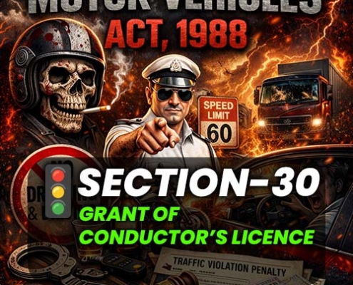 मोटर व्हीकल्स एक्ट 1988 की धारा 30 में Conductor’s Licence जारी करने के नियम बताए गए हैं। यहाँ जानें कंडक्टर लाइसेंस प्राप्त करने की प्रक्रिया और आवश्यक शर्तें सरल भाषा में।